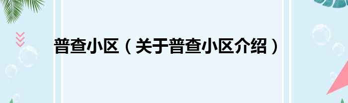 免责声明:本文由用户上传,如有侵权请联系删除!大家好,小钱来为大家解答以上的问题。普查小区,关于普查小区介绍这个很多人还不知道,现在让我们一起来看看吧!