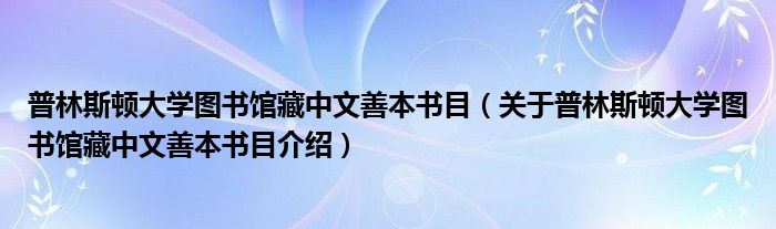 大家好,小钱来为大家解答以上的问题。普林斯顿大学图书馆藏中文善本书目,关于普林斯顿大学图书馆藏中文善本书目介绍这个很多人还不知道,现在让我们一起来看看吧!
