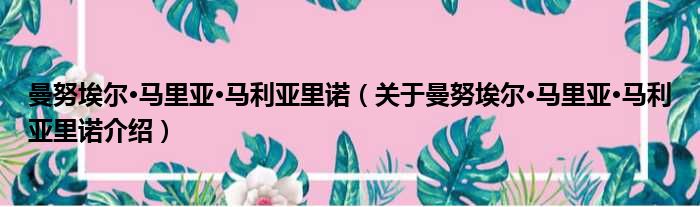 关于曼努埃尔·马里亚·马利亚里诺到此分享完毕,希望能帮助到您。
