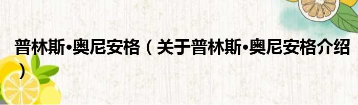 免责声明:本文由用户上传,如有侵权请联系删除!大家好,小钱来为大家解答以上的问题。普林斯·奥尼安格,关于普林斯·奥尼安格介绍这个很多人还不知道,现在让我们一起来看看吧!