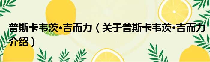 关于普斯卡韦茨·吉而力到此分享完毕,希望能帮助到您。