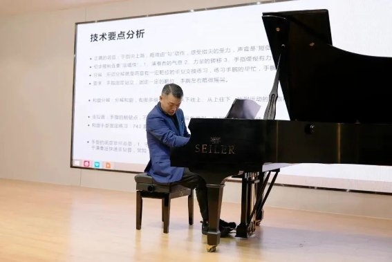 此次讲座韩冰教授深入浅出,针对6-8级曲目中的演奏要求及技术要点等进行了细致且充分的讲解,以及教学过程中,可能会遇到情绪起伏的情况,应调节情绪,适当减轻学习难度,充分激发学琴兴趣、缓解学琴紧张感……其幽默的语言、严谨的态度让在场的各位都有了更深刻的认识,同时也让在座的每一位均感到受益匪浅。