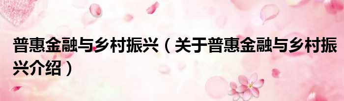 免责声明:本文由用户上传,如有侵权请联系删除!大家好,小钱来为大家解答以上的问题。普惠金融与乡村振兴,关于普惠金融与乡村振兴介绍这个很多人还不知道,现在让我们一起来看看吧!
