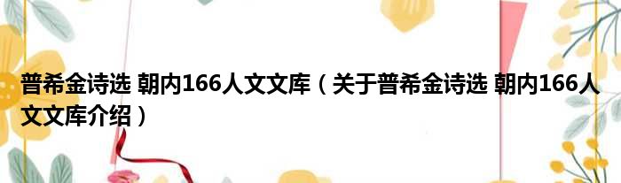 免责声明:本文由用户上传,如有侵权请联系删除!大家好,小钱来为大家解答以上的问题。普希金诗选 朝内166人文文库,关于普希金诗选 朝内166人文文库介绍这个很多人还不知道,现在让我们一起来看看吧!