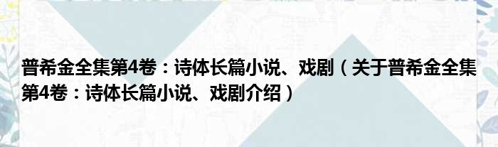 1、 《普希金全集第4卷:诗体长篇小说、戏剧》是浙江文艺出版社出版的图书,作者是(俄罗斯)普希金。