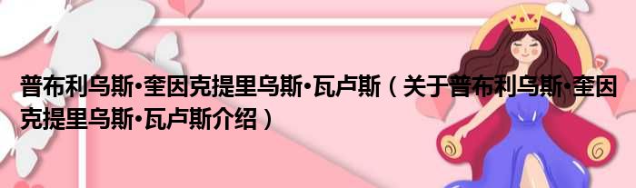 大家好,小钱来为大家解答以上的问题。普布利乌斯·奎因克提里乌斯·瓦卢斯,关于普布利乌斯·奎因克提里乌斯·瓦卢斯介绍这个很多人还不知道,现在让我们一起来看看吧!