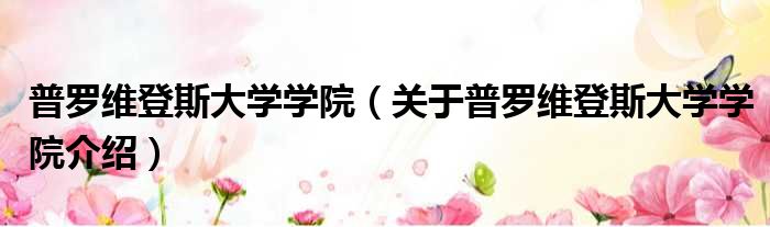 1、 普罗维登斯大学学院(Providence University College & Theological Seminary)是加拿大一所基督教文科学校,创办于1925年,曾用名普罗维登斯学院,几经变革,2011年正式更名为普罗维登斯大学学院。