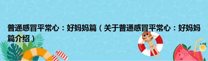 免责声明:本文由用户上传,如有侵权请联系删除!大家好,小钱来为大家解答以上的问题。普通感冒平常心:好妈妈篇,关于普通感冒平常心:好妈妈篇介绍这个很多人还不知道,现在让我们一起来看看吧!