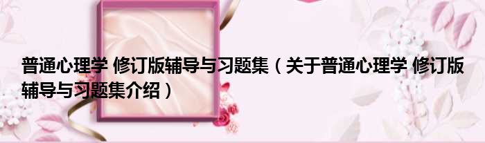 免责声明:本文由用户上传,如有侵权请联系删除!大家好,小钱来为大家解答以上的问题。普通心理学 修订版辅导与习题集,关于普通心理学 修订版辅导与习题集介绍这个很多人还不知道,现在让我们一起来看看吧!