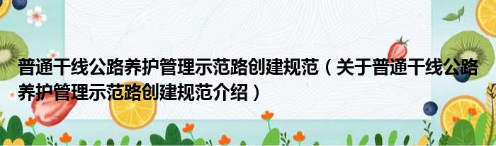 关于普通干线公路养护管理示范路创建规范到此分享完毕,希望能帮助到您。