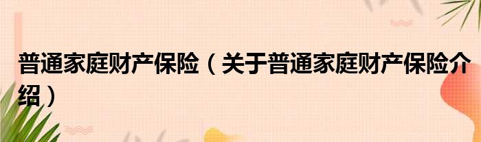 大家好,小钱来为大家解答以上的问题。普通家庭财产保险,关于普通家庭财产保险介绍这个很多人还不知道,现在让我们一起来看看吧!