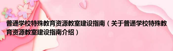 关于普通学校特殊教育资源教室建设指南到此分享完毕,希望能帮助到您。