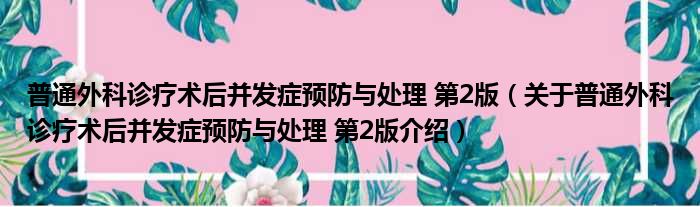 大家好,小钱来为大家解答以上的问题。普通外科诊疗术后并发症预防与处理 第2版,关于普通外科诊疗术后并发症预防与处理 第2版介绍这个很多人还不知道,现在让我们一起来看看吧!