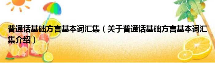 关于普通话基础方言基本词汇集到此分享完毕,希望能帮助到您。