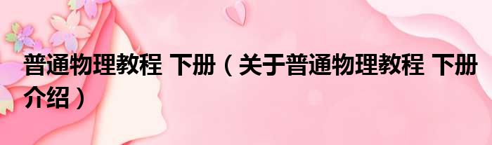 大家好,小钱来为大家解答以上的问题。普通物理教程 下册,关于普通物理教程 下册介绍这个很多人还不知道,现在让我们一起来看看吧!