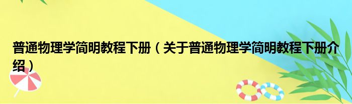 免责声明:本文由用户上传,如有侵权请联系删除!大家好,小钱来为大家解答以上的问题。普通物理学简明教程下册,关于普通物理学简明教程下册介绍这个很多人还不知道,现在让我们一起来看看吧!