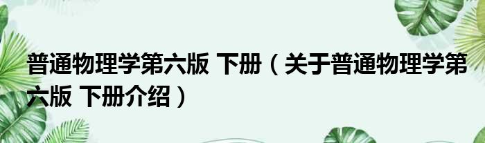 免责声明:本文由用户上传,如有侵权请联系删除!大家好,小钱来为大家解答以上的问题。普通物理学第六版 下册,关于普通物理学第六版 下册介绍这个很多人还不知道,现在让我们一起来看看吧!