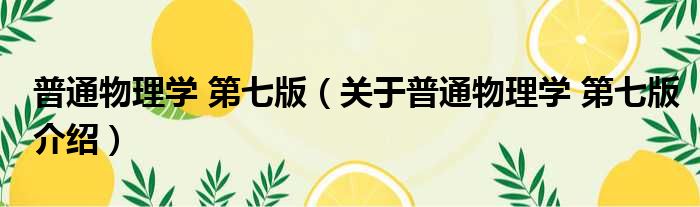 大家好,小钱来为大家解答以上的问题。普通物理学 第七版,关于普通物理学 第七版介绍这个很多人还不知道,现在让我们一起来看看吧!