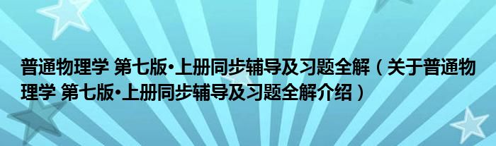 免责声明:本文由用户上传,如有侵权请联系删除!大家好,小钱来为大家解答以上的问题。普通物理学 第七版·上册同步辅导及习题全解,关于普通物理学 第七版·上册同步辅导及习题全解介绍这个很多人还不知道,现在让我们一起来看看吧!