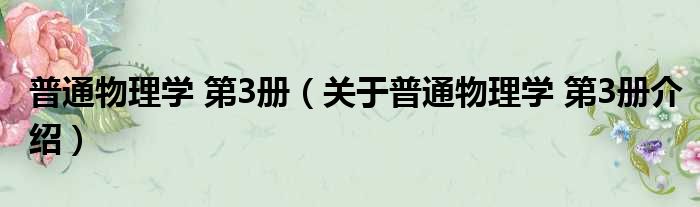 免责声明:本文由用户上传,如有侵权请联系删除!大家好,小钱来为大家解答以上的问题。普通物理学 第3册,关于普通物理学 第3册介绍这个很多人还不知道,现在让我们一起来看看吧!