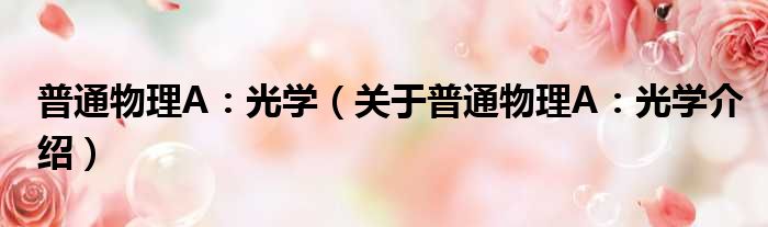 免责声明:本文由用户上传,如有侵权请联系删除!大家好,小钱来为大家解答以上的问题。普通物理A:光学,关于普通物理A:光学介绍这个很多人还不知道,现在让我们一起来看看吧!