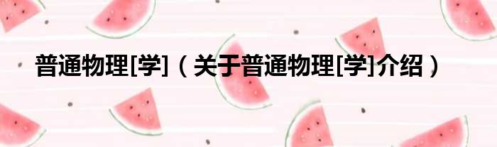 1、 普通物理[学](general physics)是2019年公布的物理学名词。