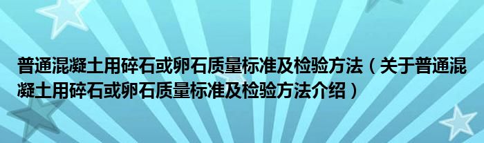 关于普通混凝土用碎石或卵石质量标准及检验方法到此分享完毕,希望能帮助到您。