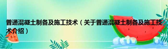 关于普通混凝土制备及施工技术到此分享完毕,希望能帮助到您。