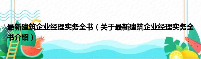 免责声明:本文由用户上传,如有侵权请联系删除!大家好,小钱来为大家解答以上的问题。最新建筑企业经理实务全书,关于最新建筑企业经理实务全书介绍这个很多人还不知道,现在让我们一起来看看吧!