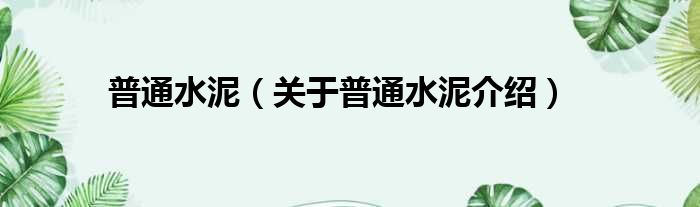 免责声明:本文由用户上传,如有侵权请联系删除!大家好,小钱来为大家解答以上的问题。普通水泥,关于普通水泥介绍这个很多人还不知道,现在让我们一起来看看吧!
