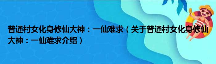 关于普通村女化身修仙大神:一仙难求到此分享完毕,希望能帮助到您。