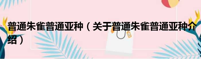 关于普通朱雀普通亚种到此分享完毕,希望能帮助到您。