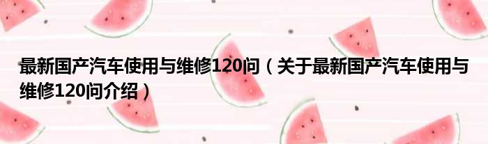 关于最新国产汽车使用与维修120问到此分享完毕,希望能帮助到您。