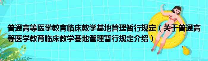 免责声明:本文由用户上传,如有侵权请联系删除!大家好,小钱来为大家解答以上的问题。普通高等医学教育临床教学基地管理暂行规定,关于普通高等医学教育临床教学基地管理暂行规定介绍这个很多人还不知道,现在让我们一起来看看吧!