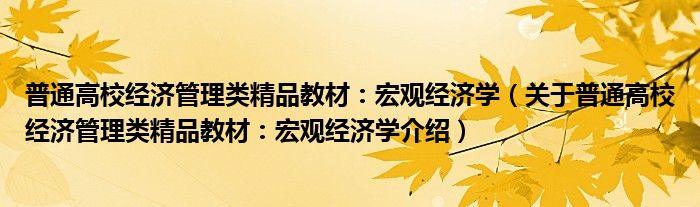 1、 《普通高校经济管理类精品教材:宏观经济学》是教育部所列的经济管理类大学本科教育的核心基础课程。
