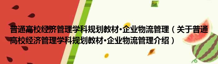 1、 《普通高校经济管理学科规划教材·企业物流管理》是2008年中国铁道出版社出版的图书。
