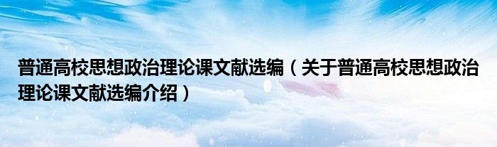 大家好,小钱来为大家解答以上的问题。普通高校思想政治理论课文献选编,关于普通高校思想政治理论课文献选编介绍这个很多人还不知道,现在让我们一起来看看吧!