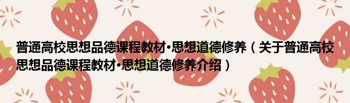免责声明:本文由用户上传,如有侵权请联系删除!大家好,小钱来为大家解答以上的问题。普通高校思想品德课程教材·思想道德修养,关于普通高校思想品德课程教材·思想道德修养介绍这个很多人还不知道,现在让我们一起来看看吧!