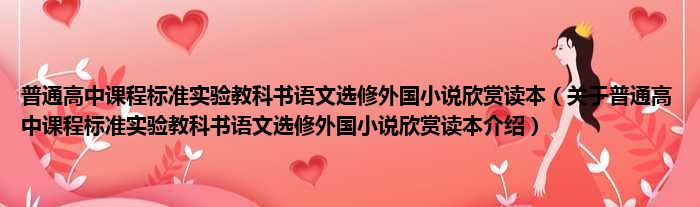 大家好,小钱来为大家解答以上的问题。普通高中课程标准实验教科书语文选修外国小说欣赏读本,关于普通高中课程标准实验教科书语文选修外国小说欣赏读本介绍这个很多人还不知道,现在让我们一起来看看吧!