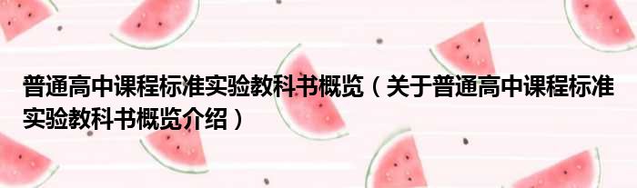关于普通高中课程标准实验教科书概览到此分享完毕,希望能帮助到您。