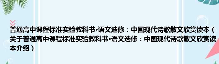 关于普通高中课程标准实验教科书·语文选修:中国现代诗歌散文欣赏读本到此分享完毕,希望能帮助到您。