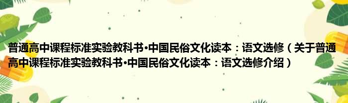 关于普通高中课程标准实验教科书·中国民俗文化读本:语文选修到此分享完毕,希望能帮助到您。