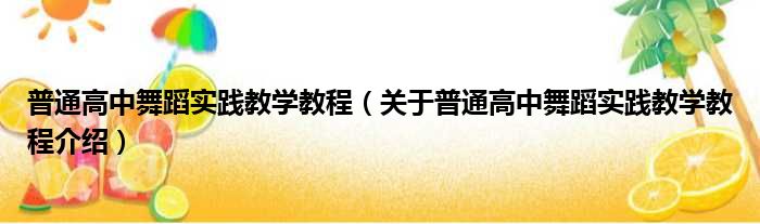 关于普通高中舞蹈实践教学教程到此分享完毕,希望能帮助到您。