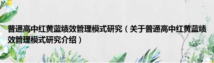 关于普通高中红黄蓝绩效管理模式研究到此分享完毕,希望能帮助到您。