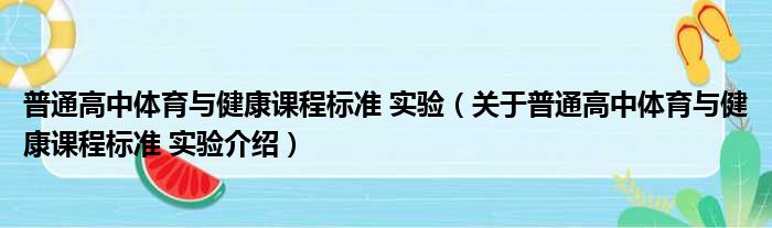 大家好,小钱来为大家解答以上的问题。普通高中体育与健康课程标准 实验,关于普通高中体育与健康课程标准 实验介绍这个很多人还不知道,现在让我们一起来看看吧!