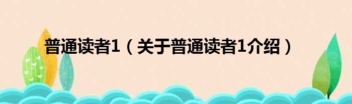 大家好,小钱来为大家解答以上的问题。普通读者1,关于普通读者1介绍这个很多人还不知道,现在让我们一起来看看吧!