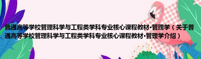 1、 《普通高等学校管理科学与工程类学科专业核心课程教材·管理学》是普通高等教育“十一五”国家级规划教材,高等学校管理科学与工程类学科核心课程教材。