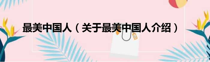 免责声明:本文由用户上传,如有侵权请联系删除!大家好,小钱来为大家解答以上的问题。最美中国人,关于最美中国人介绍这个很多人还不知道,现在让我们一起来看看吧!