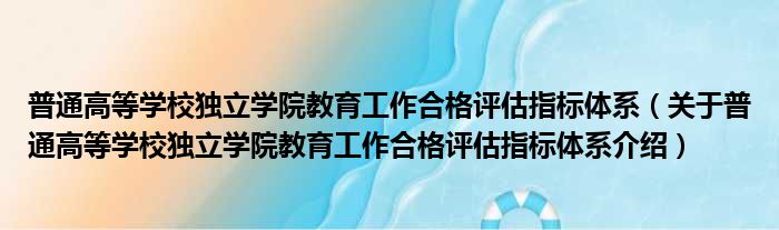 关于普通高等学校独立学院教育工作合格评估指标体系到此分享完毕,希望能帮助到您。