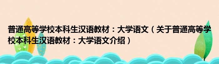 关于普通高等学校本科生汉语教材:大学语文到此分享完毕,希望能帮助到您。